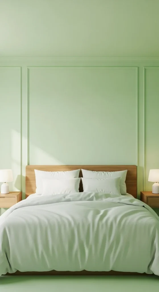 7. Color-Drenched Light Green Bedroom