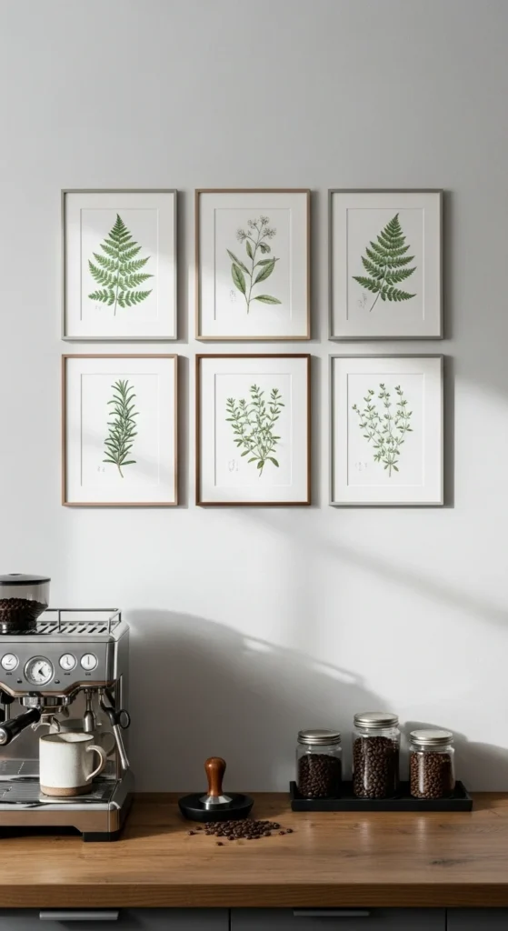 For a polished look, keep the inserts in one color family: black-and-white sketches, muted greens, or soft pastels. If your kitchen leans modern, choose a sleek sheet pan and minimal prints. If it’s a farmhouse, go for worn metal and a looser arrangement. It’s decor that starts conversations and costs very little.