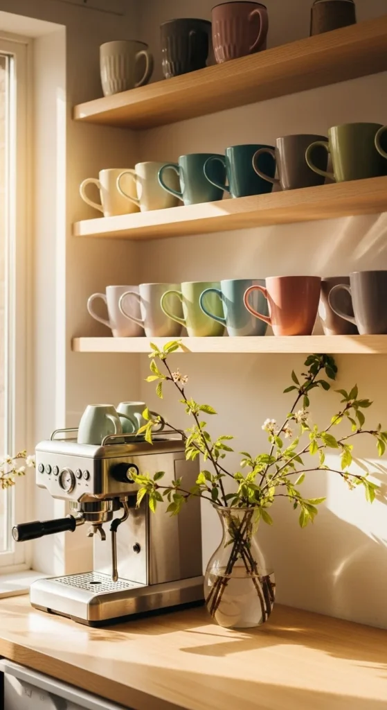 Coffee areas get daily attention, so style them. Swap mugs. Add a plant. Keep surfaces clear. Function comes first.