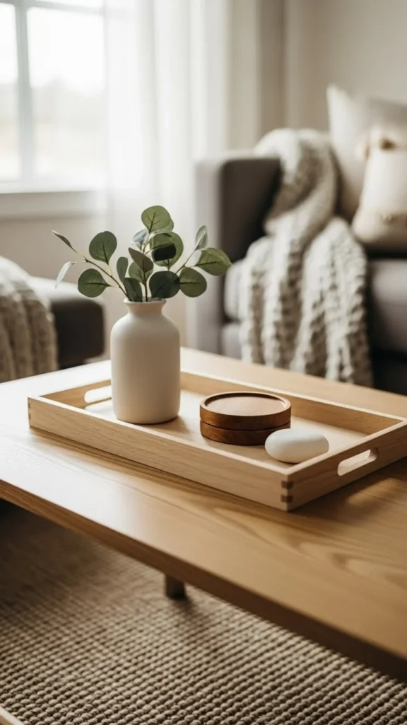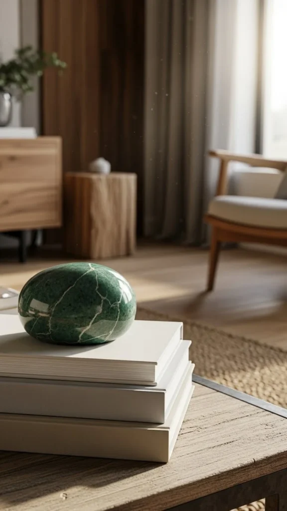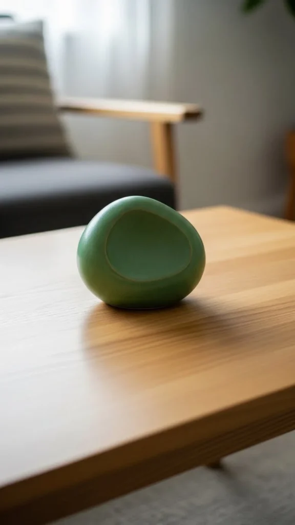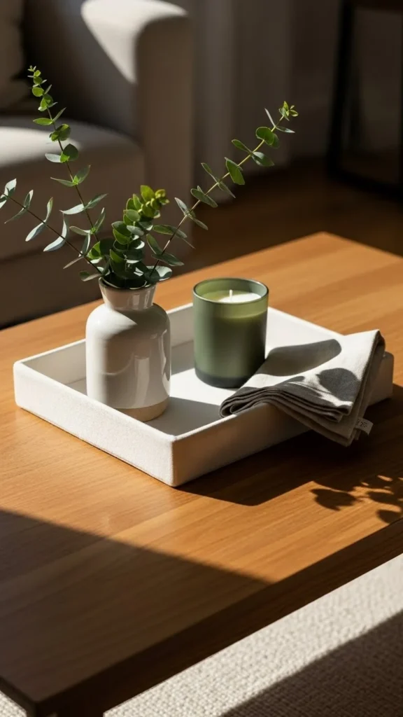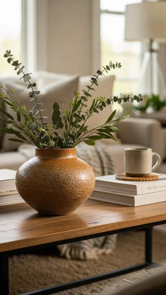 Living plants add life quietly. Choose a simple pot. Water lightly and rotate for even growth. Living accents bring calm energy. Compact pots suit coffee tables better than large planters. Move it to a windowsill at night.