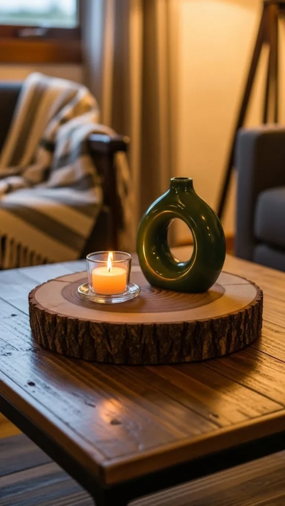 Wood slices add warmth fast. Seal it with clear wax to prevent stains. Use it to group two items only. Grounded styling keeps things calm. Natural edges add character without effort. Store it easily when not in use.