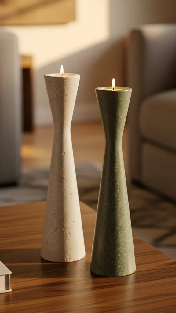 Candlesticks feel calm when shapes are simple. Mix materials but keep colors close. Use taper candles in off-white. Balanced pairings feel relaxed. Slim profiles save space. Store candles upright to avoid warping.