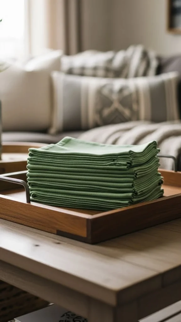 15. Soft Green Fabric Napkins as Decor