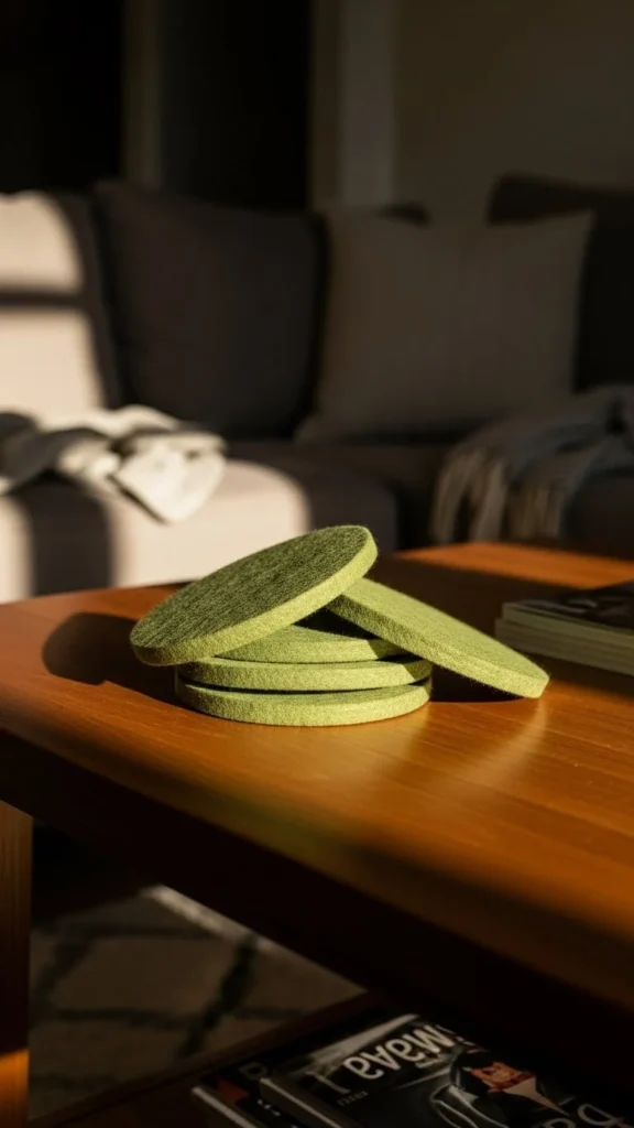 21. Soft Green Felt Coasters in a Loose Stack