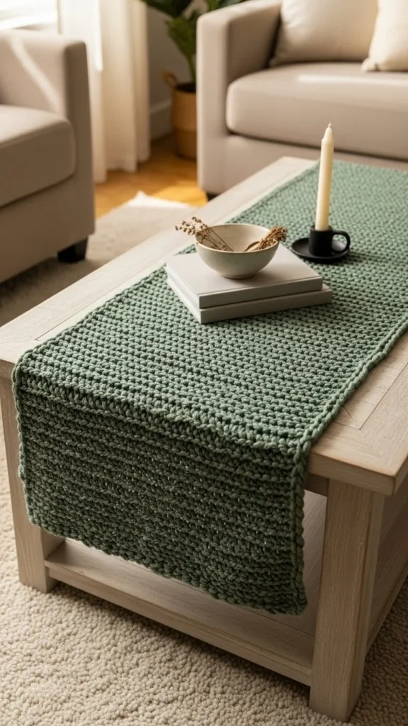6. Knitted Table Runner in Soft Clover