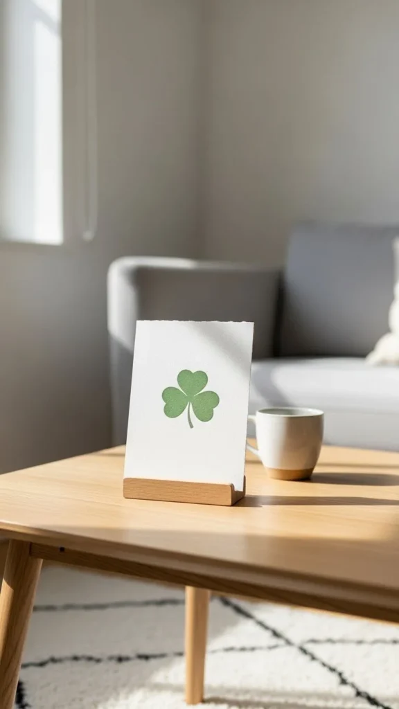 9. Minimal Shamrock Art Card on a Stand