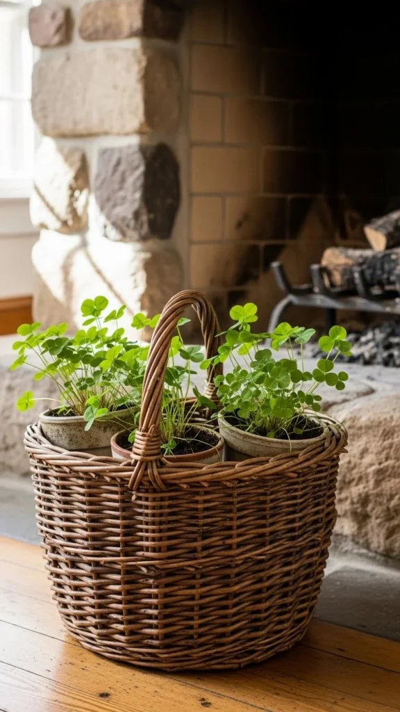 Baskets ground decor visually. Use live plants when possible. Rotate pots for sunlight. Reuse baskets year-round.