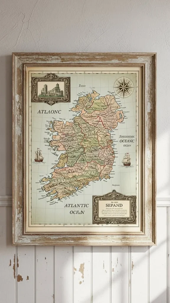 Maps tell stories without novelty. Choose aged paper tones. Pair with botanicals or books. Quiet heritage elements feel personal and timeless rather than seasonal.