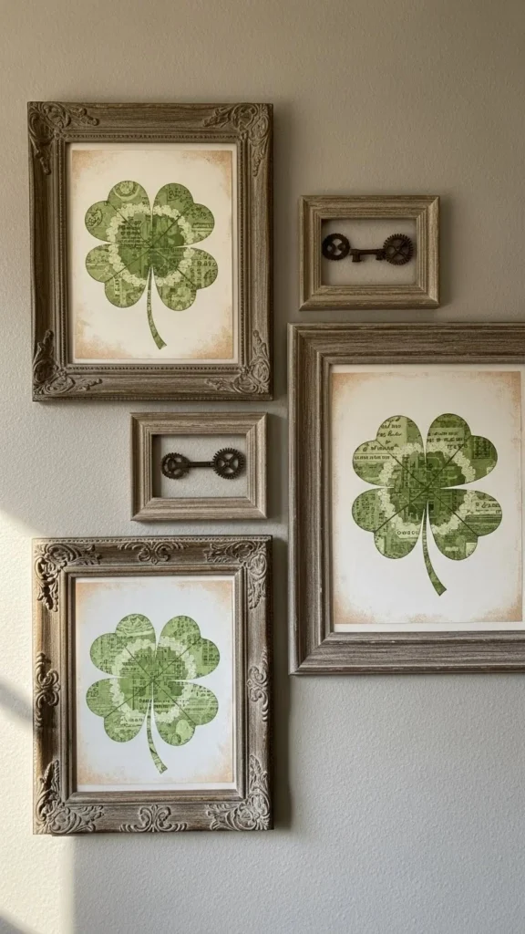 Moss shamrocks feel handmade and grounded. Dollar-store moss sheets cut cleanly with scissors. Use floral wire for shape control. Hang in small groupings for balance. Natural texture always wins over glossy decor. When the holiday passes, store flat in a box to reuse next year.