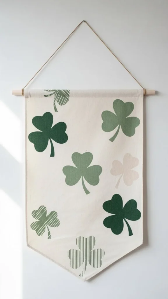 Wall banners add vertical interest without damaging walls. A simple St Patrick’s Day banner works well in small spaces. Choose fabric over paper for a softer look. Felt, cotton, or canvas drape better and store easily. Hand-cut shapes feel more personal than printed designs. If sewing isn’t your thing, fabric glue works fine. Keep lettering minimal or skip words entirely for a cleaner result. Hang the banner above a console, bed, or reading nook. Avoid placing it too high. Eye-level placement feels balanced. After March, fold it carefully and store it flat to avoid creases.