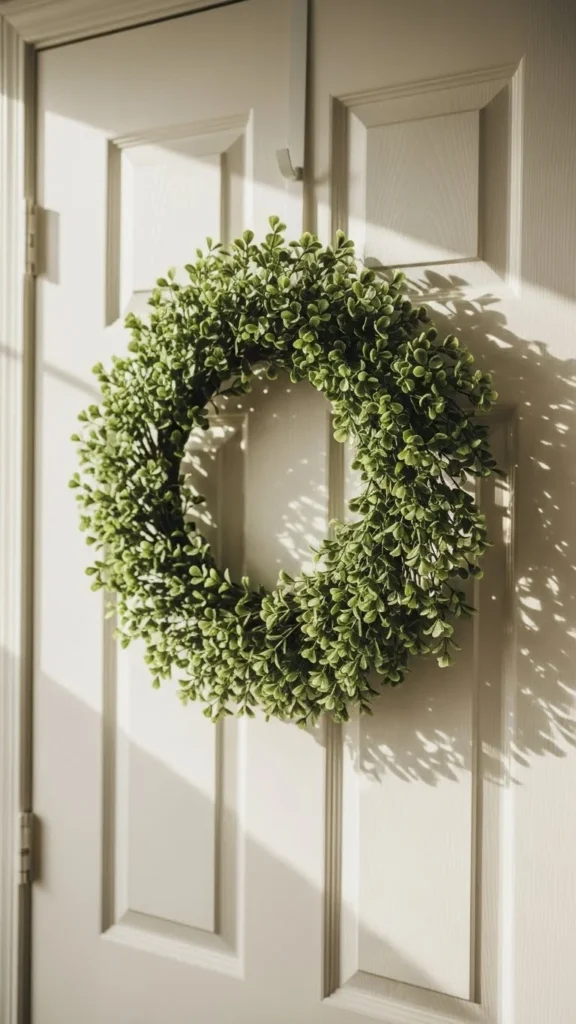 Interior wreaths bring decor into unexpected places. A clover wreath works well on bedroom or pantry doors. Keep the wreath slim so it doesn’t interfere with movement. Greenery-only designs feel calmer than mixed-color versions. Use removable hooks to avoid marks. After the season, store the wreath in a flat box to keep its shape.
