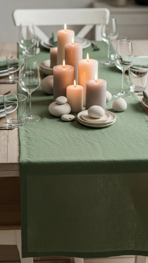 A runner defines space without covering everything. Linen feels relaxed. Keep color muted. Let table edges show. Add candles or greenery for balance. Table styling with layers works best when pieces stay few.