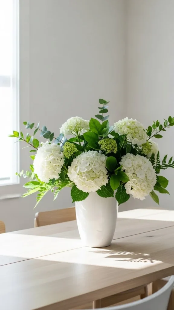 14. Green and White Floral Display