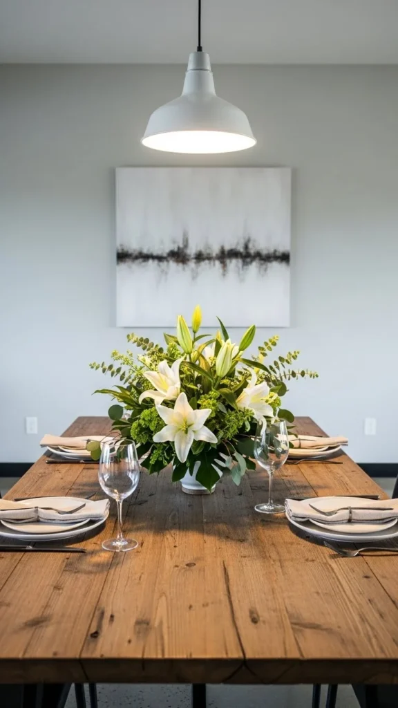Florals don’t need bright colors. Green and white feel calm. Grocery store flowers work fine. Keep stems loose. Simple floral palettes last longer visually.