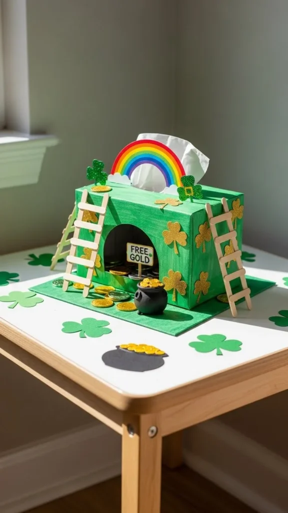 Leprechaun traps can stay playful without taking over the room. Keep them contained to one corner. Use a small table or shelf just for kids’ creations. Limit colors to green, white, and kraft paper. Avoid shiny foil or loud plastics. This turns the trap into decor rather than clutter. Kids still feel involved, and adults keep visual calm. Playful zones with boundaries work best in shared spaces. When the holiday ends, everything packs away quickly.