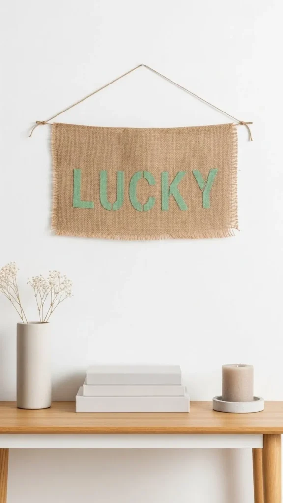 Burlap brings texture without excess. Keep lettering simple. Hand-painted or stenciled text works well. Limit words to one short phrase. Hang with twine or wooden pegs. Textural balance matters more than bold color. This fits farmhouse or minimalist homes easily.