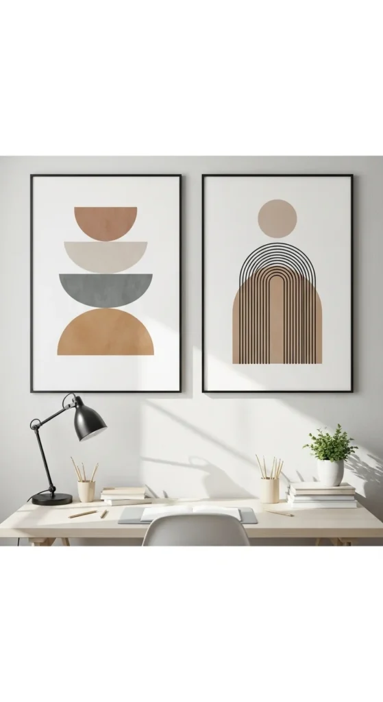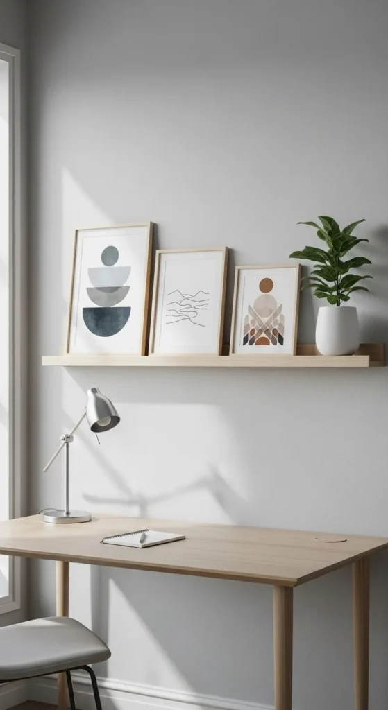 Art prints personalize your workspace. Choose calming themes or shapes that help your eyes rest. Try to avoid overly bright and busy artwork, as it can distract. Small frames arranged neatly create a tidy visual line above your desk. You can print downloadable art from online shops and use affordable frames. Refreshing the prints occasionally is a simple way to shift the atmosphere of your study room.