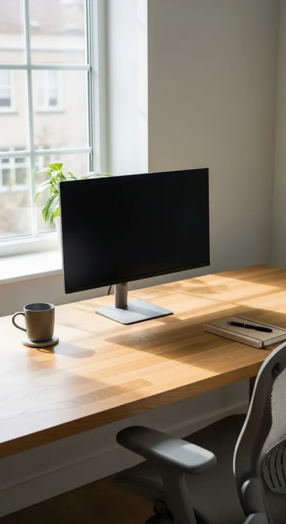 A minimalist desk helps reduce distraction. Keep only what you use daily: your device, a notebook, and one pen. If you enjoy decor, limit it to a plant or a small figurine. The idea is to remove visual noise so your mind can settle quickly when you sit down. Use cable clips and drawer trays to keep hidden clutter controlled. If you’re working with a shared room, store your extra items in a designated basket or shelf. Over time, you’ll notice it’s easier to start tasks when your desk looks simple and open. This type of setup promotes steady focus and peaceful working time.