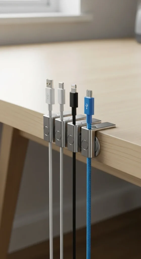 Cable clips keep cords from tangling and dropping behind your desk. You can attach them to the back or side of your workspace. Choose clips that match your desk color for a seamless look. This small tool makes organizing easier and prevents desk clutter from returning over time.