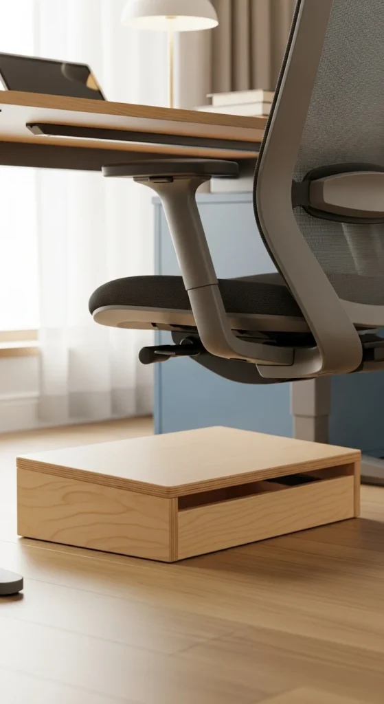 A footrest improves comfort during long study hours. It supports posture by keeping your feet at a natural angle. Wooden footrests add warmth, while cushioned ones provide extra softness. If you want a no-cost option, use a sturdy box or stack of old books. Adjust the height until your knees sit comfortably. This small change encourages more relaxed body positioning. When your body feels supported, your mind has an easier time remaining steady and attentive. Keep the footrest tucked neatly under the desk when not in use to maintain open floor space. The idea is to create comfort without clutter, making studying feel more inviting.