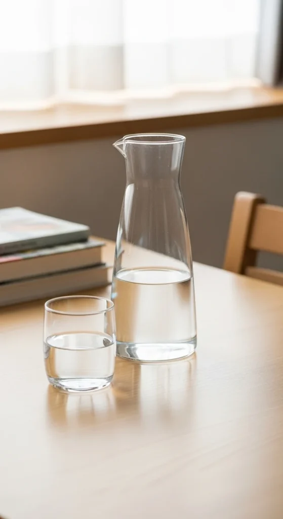 Keeping water nearby encourages steady hydration without breaking focus. A glass set looks clean and intentional, making the space feel cared for. Refill it at the start of each study session. Having water visible reminds you to take small sips regularly, helping your body stay comfortable while studying.
