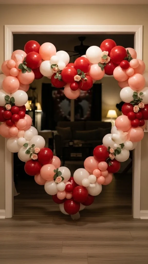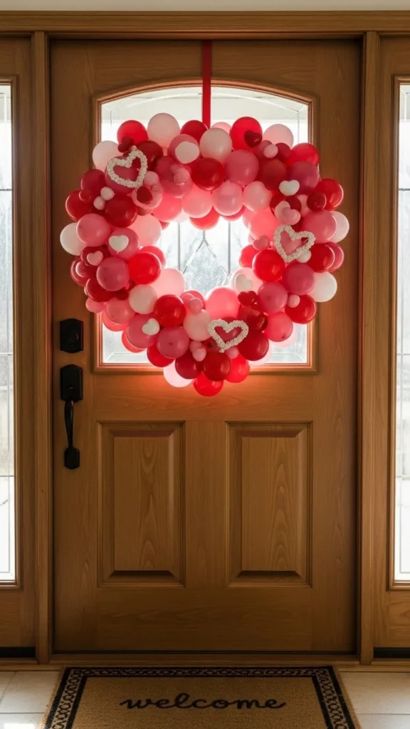 Balloon wreaths are a fun twist on traditional door decor. Use small balloons tightly packed. Secure them to a circular base. This works for indoor doors too. Balloon wreaths feel festive and lighthearted for Valentine gatherings.