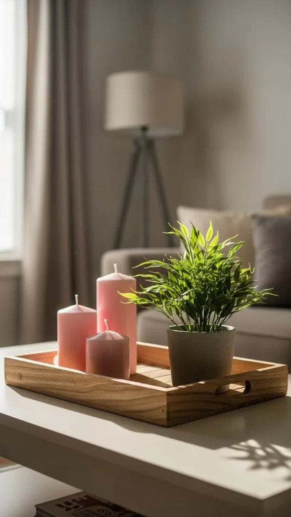 Styling trick: let the tray edges breathe. Don’t be overcrowded. Space around it helps the shape read clearly. For small tables, choose a slimmer profile so it doesn’t take over.