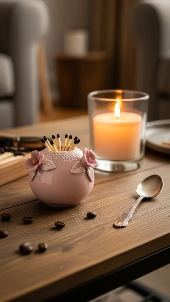 Match strikers add function and style. Soft pink ceramics fit Valentine themes easily.