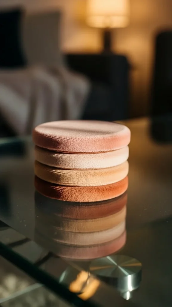 Stone coasters bring weight and calm to a coffee table setup. Blush-toned stone adds soft romantic balance without reading as themed decor. Stack them slightly offset so the edges show. This keeps the look relaxed instead of stiff.
