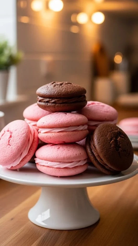 Whoopie pies feel playful and familiar. Stack them loosely so the display doesn’t look rigid. Mixing flavors keeps things interesting. Dust a few with powdered sugar for contrast. Cake stands help lift them without taking much space. These treats hold well at room temperature, making them reliable for longer gatherings. Wrap extras in parchment for later. Guests love the handheld size and soft texture. Pair them with a lighter dessert nearby for balance.
