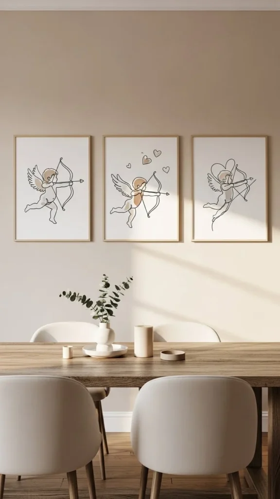 Wall art sets the mood without touching the table. Line drawings feel lighter than full illustrations. Keep frames simple. Printable art keeps costs low. Wall decor frames the table nicely. Swap prints seasonally to refresh the space.