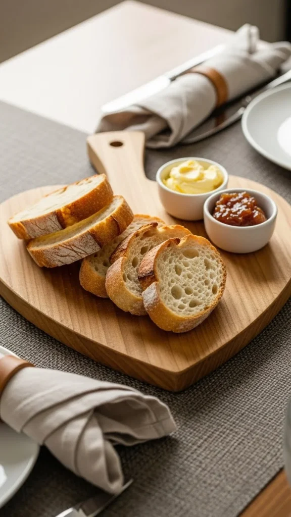 A heart-shaped board adds theme through function. Use it for bread, butter, or small bites. Wood keeps the look grounded. Functional decor always feels natural. Keep food simple so the board shape stands out. Place it in the center or slightly off to one side. After Valentine’s Day, use it for snacks or display. Handwash to keep the shape looking good. This is a subtle way to carry the theme through the meal itself.