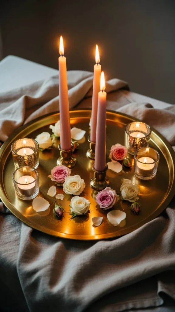Candle rings bring a soft botanical touch to your Valentine’s décor. Slip them around taper candles or pillar bases. Choose rings with roses or tiny blossoms. Keep colors muted for a calm look. These rings add shape and detail without crowding the mantel. If you want to DIY, use floral wire and faux stems to build your own small wreaths that sit snugly around candle bases.