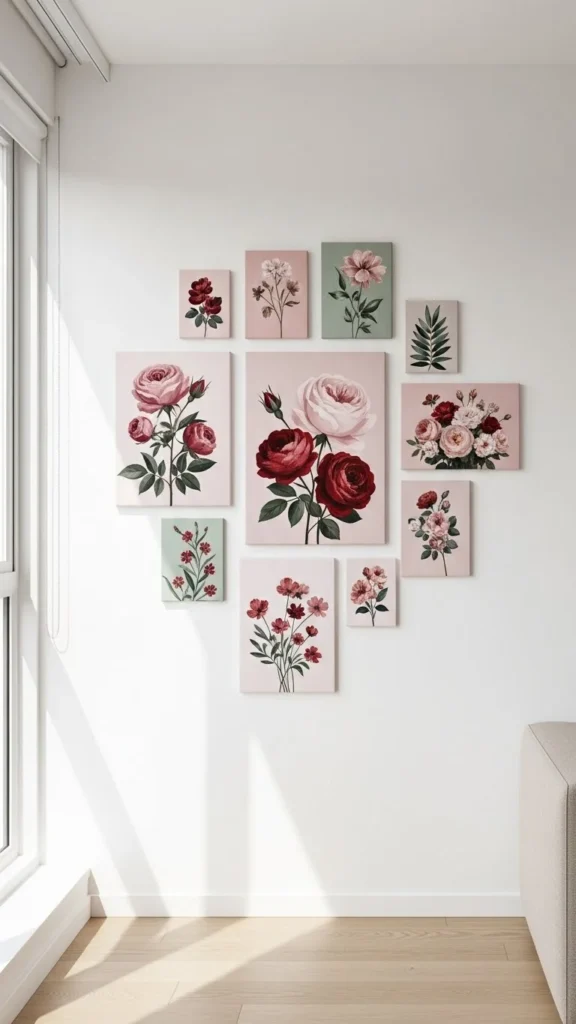 Floral canvas art gives a clean look with almost no setup time. Choose canvases with similar color stories. Mix sizes but keep spacing consistent. This avoids a cluttered feel on camera. Matte canvases work better than glossy ones for photos.