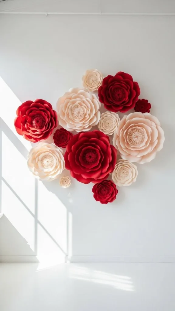 Photograph during daytime for best results. Side lighting adds depth to petals. Stand a step forward so shadows stay soft. Paper flowers give drama without weight, making them easy to store after Valentine’s Day.