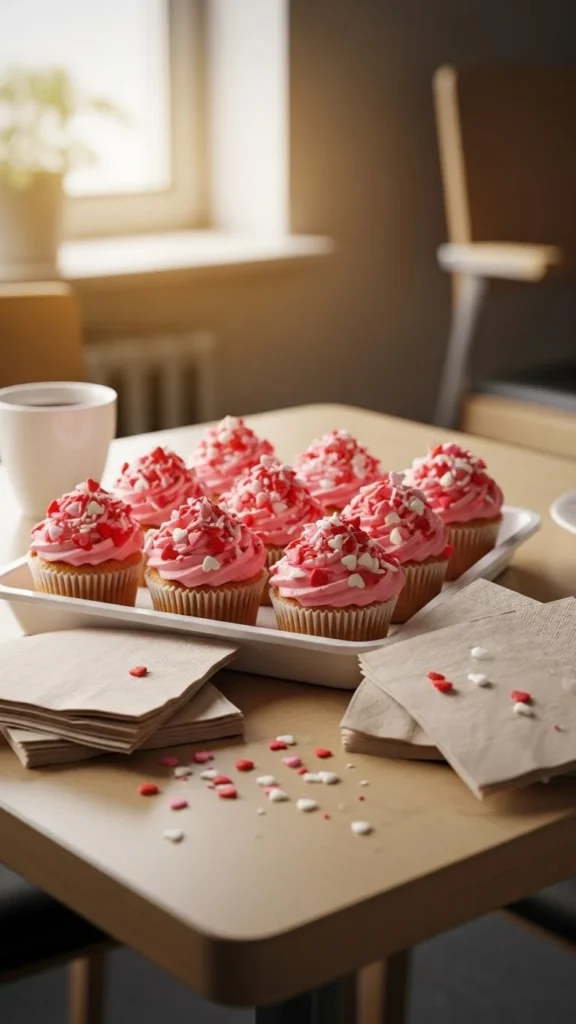 Food décor brings people together. Cupcakes are easy to serve. Add soft pink frosting. Use disposable trays for cleanup. This setup suits break rooms or reception counters. It encourages short breaks and easy chats. If you want a cost-friendly approach, bake at home. Decorate with sprinkles and simple piping. Keep napkins and plates nearby. It’s a welcoming gesture for coworkers. The setup doesn’t demand much space.