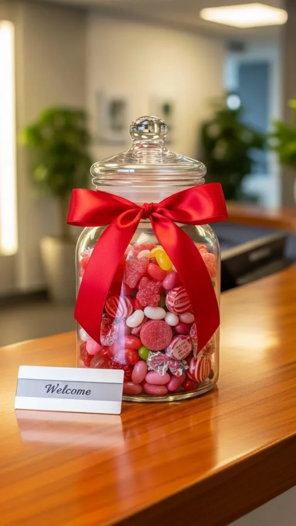Candy jars invite micro-breaks. Choose wrapped candies for hygiene. Add ribbon for color. Place jars in reception or meeting rooms. If you want savings, buy candy in bulk. Change contents weekly to avoid staleness. This décor feels welcoming. Keep it clean and refill as needed.