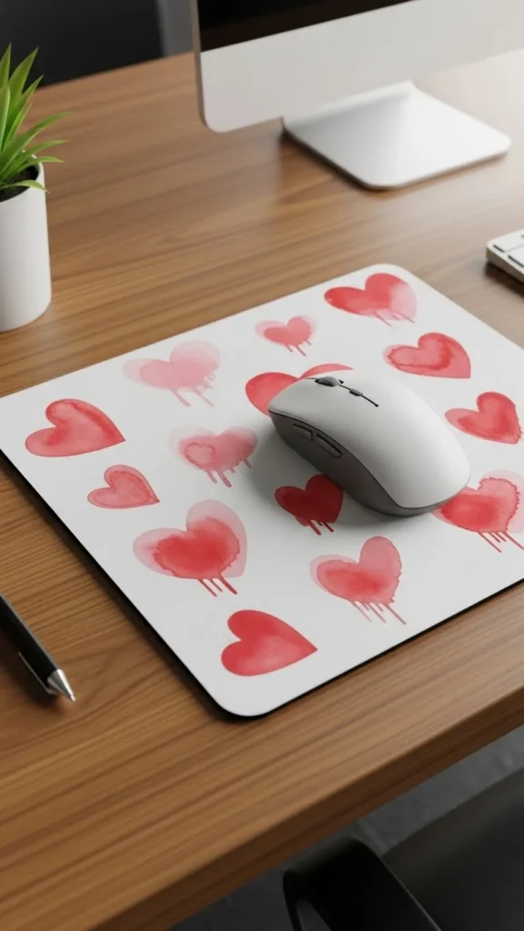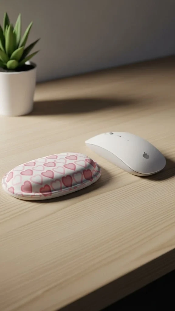 Wrist rests improve comfort. Fabric covers add charm. Choose soft foam for support. Red or pink patterns hint Valentine’s Day. Keep the size small for neatness. Pair with keyboard covers. This décor focuses on comfort and seasonal style. It’s ideal for long hours at work.