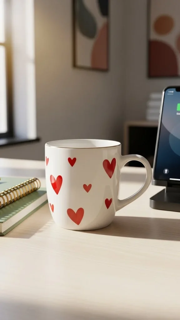 A themed mug is subtle and practical for daily use. Choose ceramic because it holds heat well. If you want personal flair, paint hearts using ceramic markers and bake to set. This mug becomes décor when paired with coasters or desk mats in complementary colors. Try creating a tea or cocoa station for coworkers to share. It encourages casual chats and sets a relaxed mood. If your budget is tight, thrift shops often carry holiday mugs at low prices. Handle them carefully to avoid chips. When the holiday passes, keep it as a keepsake for home use. Small pieces like this keep the Valentine vibe cozy without overwhelming your desk. It’s functional décor that blends with everyday office items seamlessly.