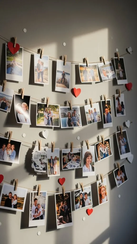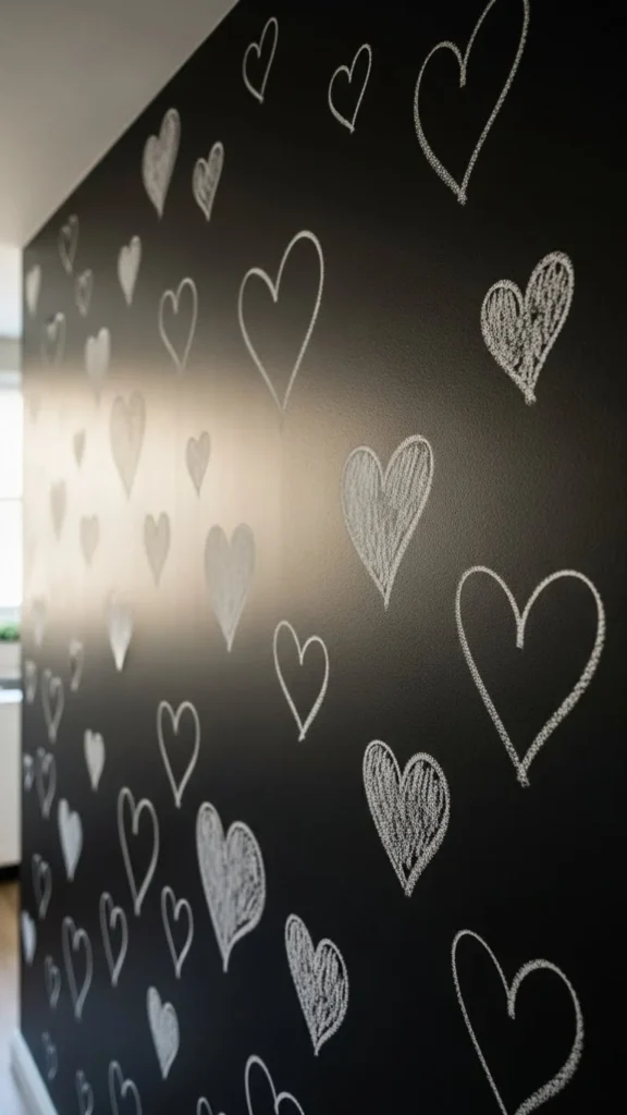 Chalkboard walls bring a handmade feel. Draw simple hearts and borders instead of full messages. That keeps photos timeless. Imperfect lines add charm. Use chalk markers for cleaner edges. This works well in kitchens or entryways. Wipe and redesign anytime.