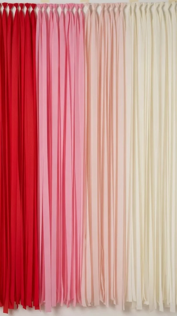 Color-block streamers create a bold background without complex setup. Choose two or three tones and repeat them in wide columns. Narrow strips feel busy on camera. Tear the bottom edges slightly so the finish looks relaxed. Strong color contrast frames faces well. Painter’s tape works for quick mounting and easy removal. If space is tight, cover only the center area where people stand. Pair this backdrop with solid outfits to avoid clashing patterns. For photos, step subjects a foot away from the wall to reduce harsh shadows. Streamers store flat and can be reused for birthdays or showers. Add a single balloon cluster on one side if you want extra detail without crowding the frame.