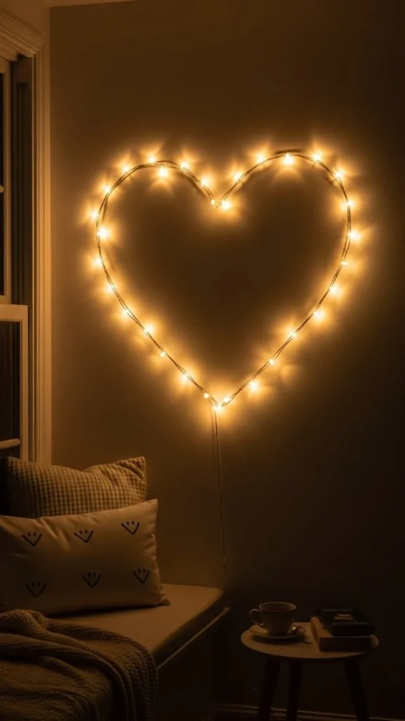 Fairy lights shaped into a heart feel intimate and simple. Use thin wire lights for clean lines. Secure with clear hooks. Keep the heart slightly oversized so people fit inside the frame. Warm light flatters skin tones. This backdrop costs little and stores easily. Turn off overhead lights to avoid color clashes. Add a small rug or chair for posing. Replace batteries before shooting for even brightness.