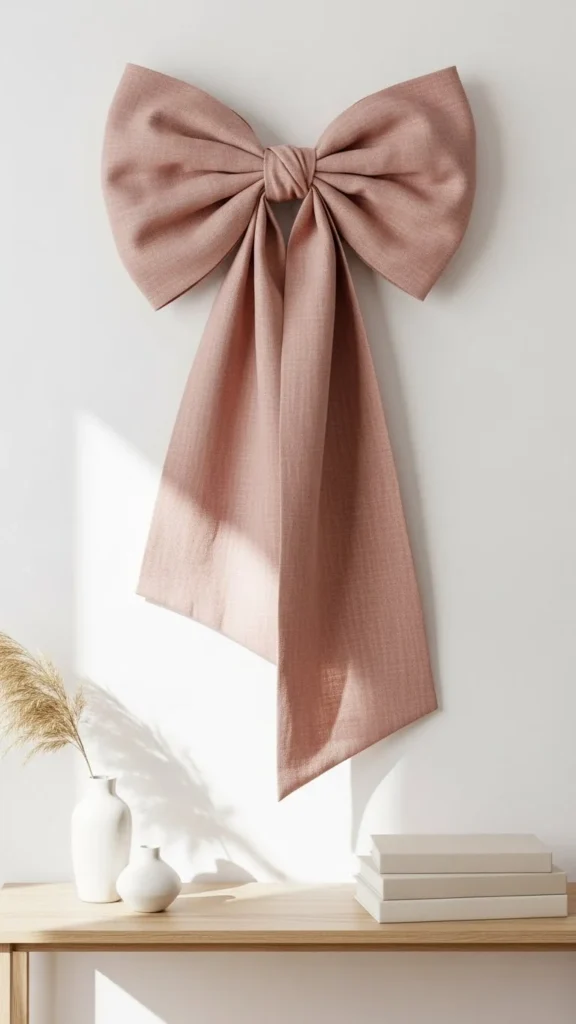 Fabric bows feel playful yet romantic when done simply. Linen or cotton works better than shiny ribbon. Make them oversized for impact. Attach with removable hooks to avoid wall marks. Keep the rest of the wall bare so the bows stand out. Statement softness works especially well in entryways or dining areas.