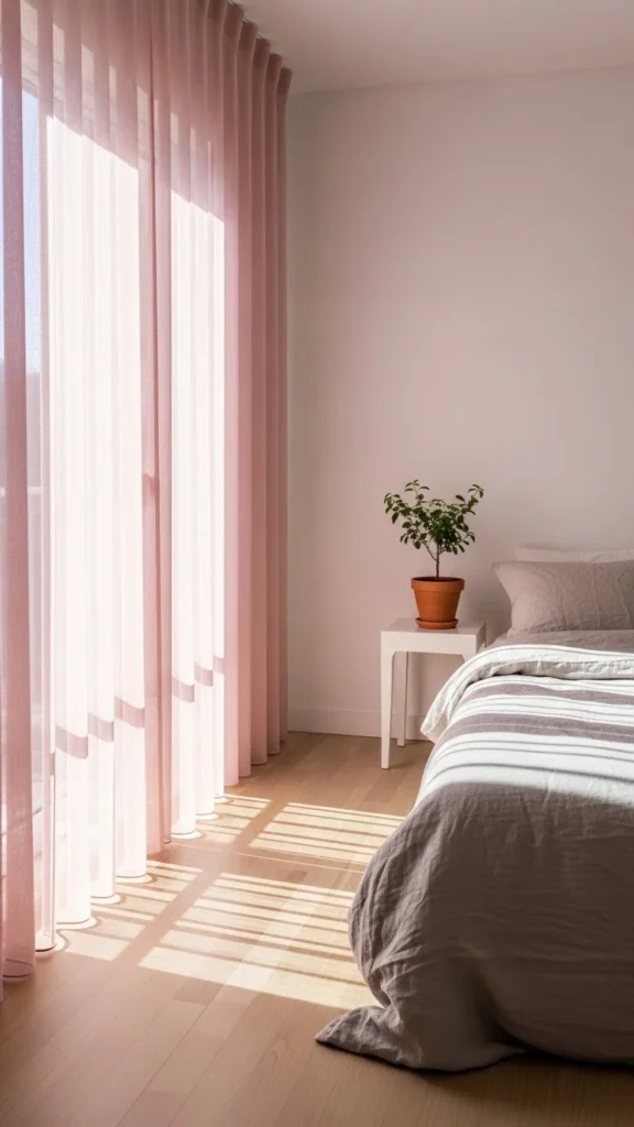 3. Rose-Toned Sheer Curtains