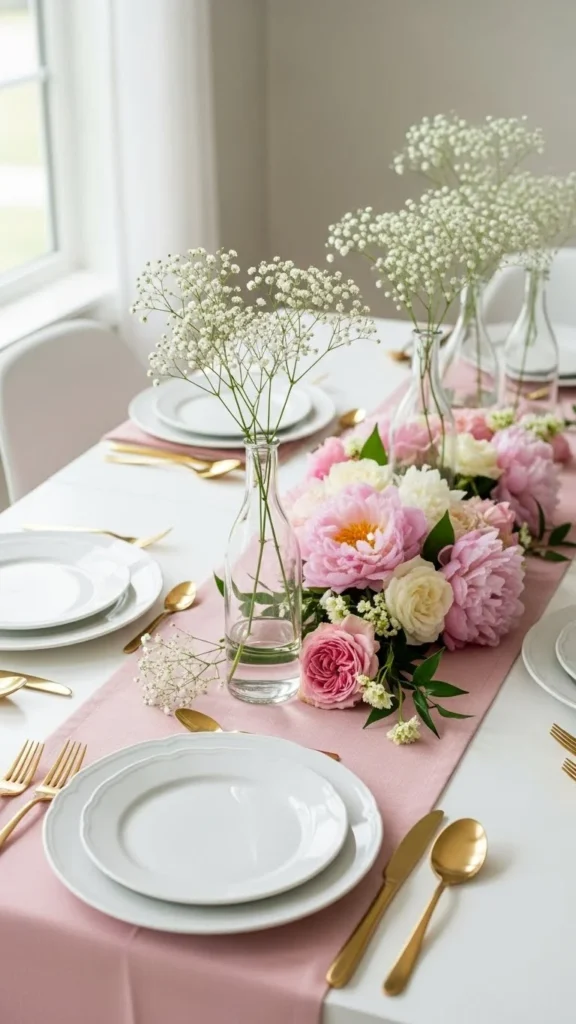 A floral runner adds romance without clutter. Choose watercolor-style prints for a lighter look. DIY one using fabric remnants and hemming tape. Keep place settings plain so the runner stands out. Subtle pattern play keeps the table calm.