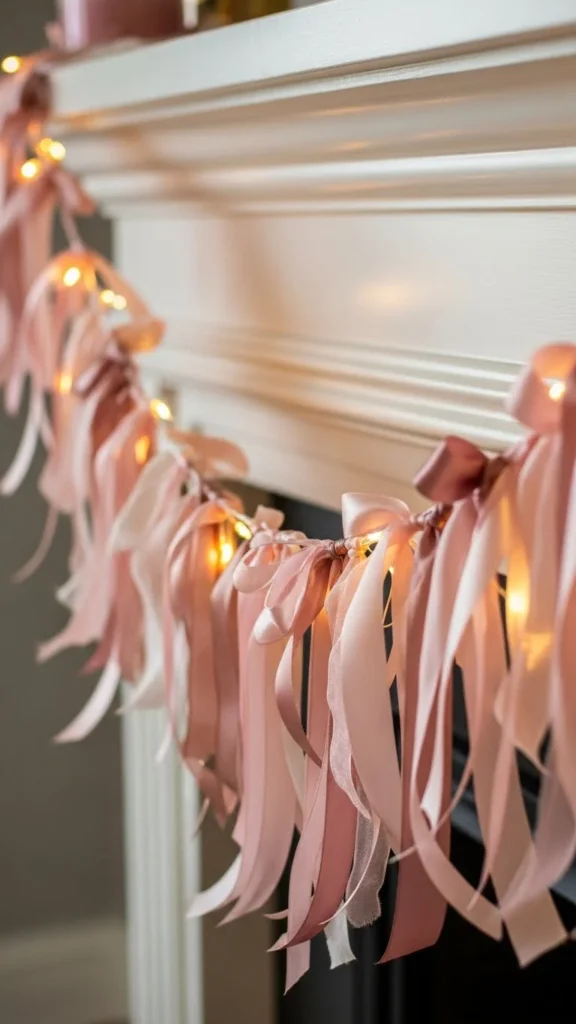Ribbon garlands feel playful and romantic. Cut uneven lengths for movement. Mix satin with sheer ribbons for depth. Attach using removable hooks. Add tiny lights for nighttime charm. Budget-friendly charm at its best.