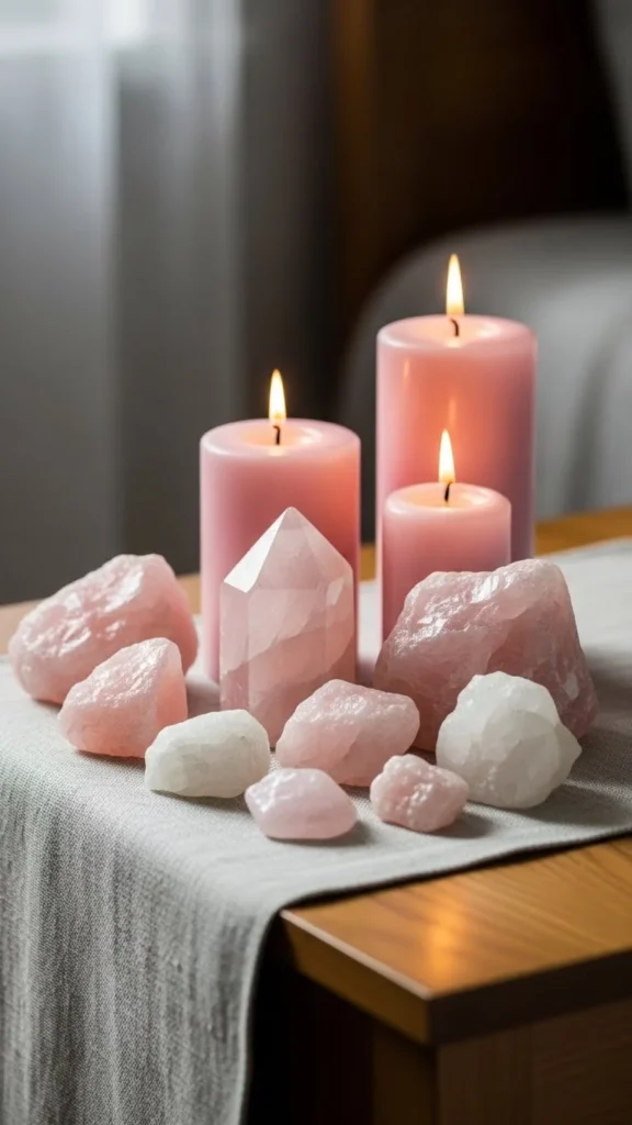 Rose quartz adds gentle color and meaning. Use small pieces as bookends or tray fillers. Keep surfaces uncluttered so stones feel intentional. Pair with wood or linen for balance. Soft energy works well in quiet corners.