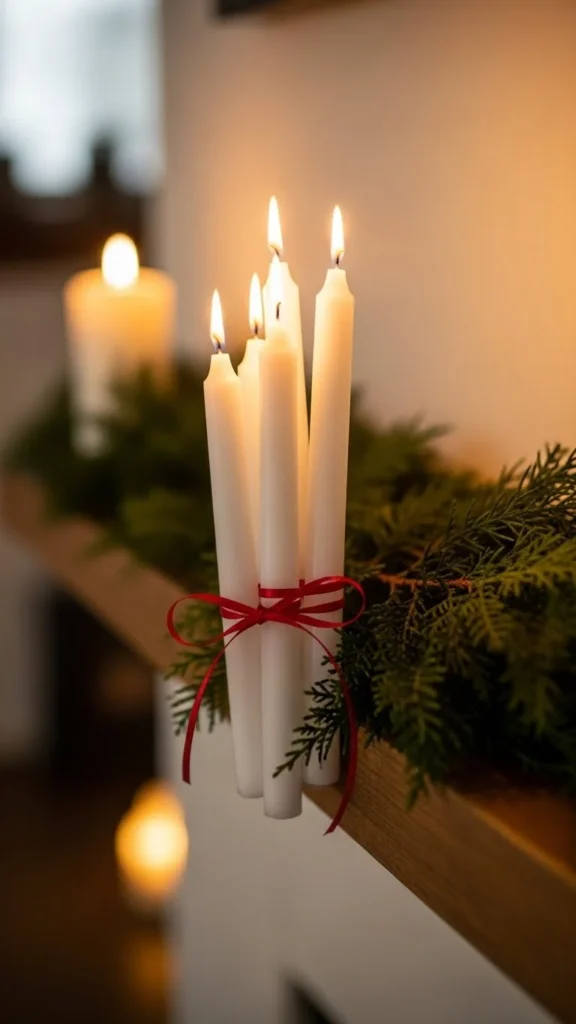 Ribbon adds charm with almost no cost. Use satin or cotton ribbon for a soft finish. Tie loose bows rather than tight knots. This works well for mantels or dinner tables. Remove ribbons later and reuse the candles.