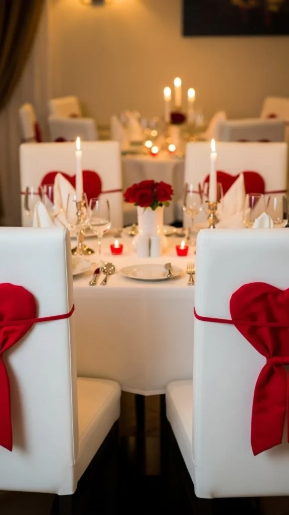 Chair ties add detail without crowding the table. Use felt or fabric scraps. Loose knots feel casual and inviting. This works well for special dinners at home.