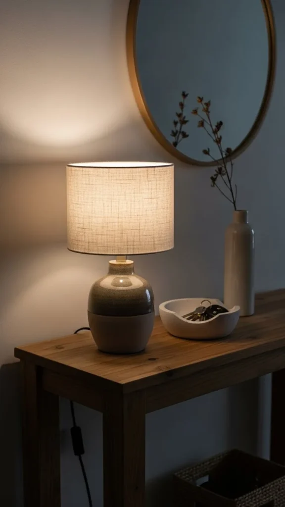 Entryway lighting sets the mood right away. Use warm bulbs only. Keep lamps on dimmers if possible. First impressions feel inviting.